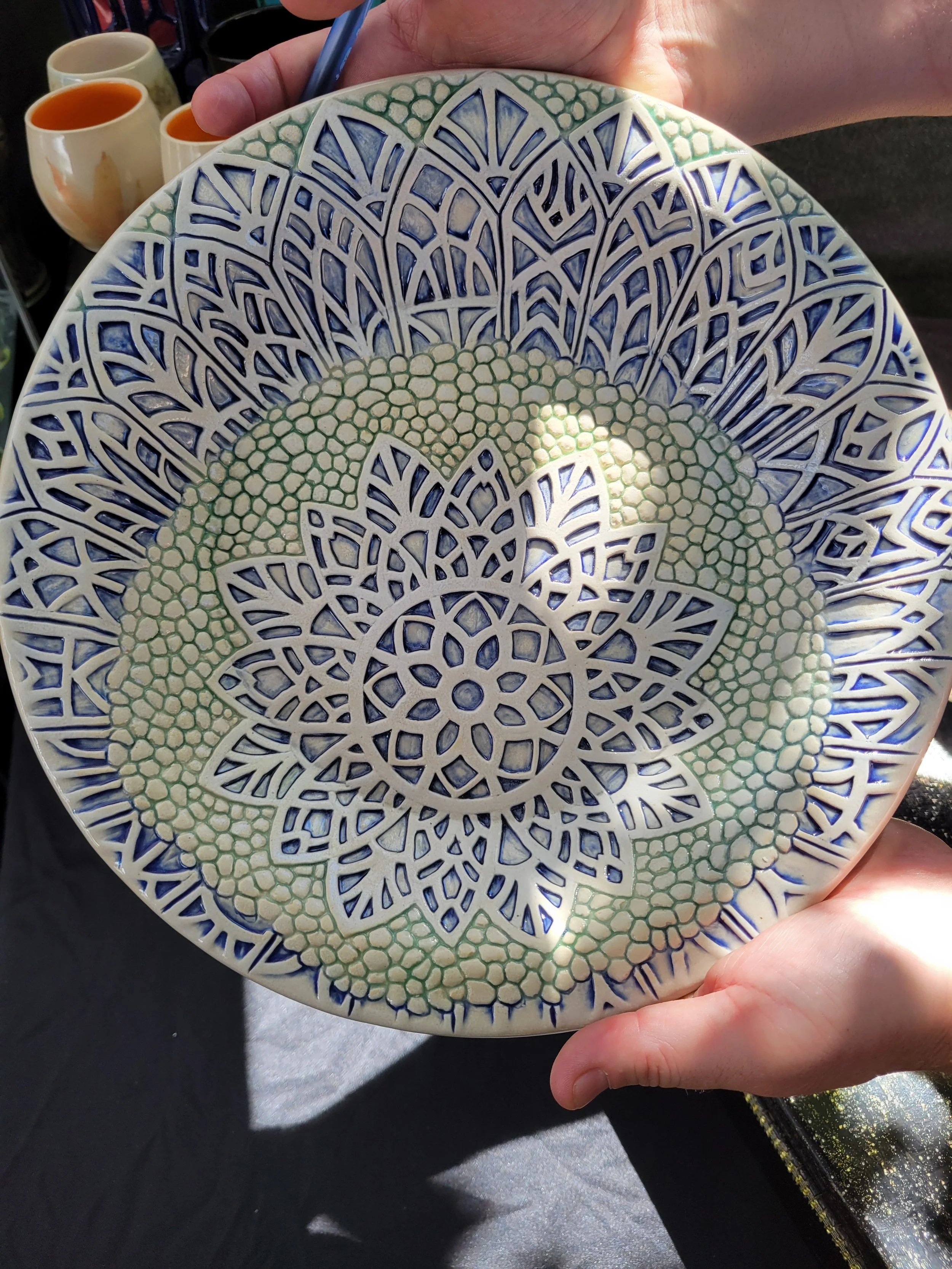 Categories: All Classes NEW Fine Art Dining & Functional Ware Tile Installation Home Decor Services Sale All | Classes | NEW | Fine Art | Dining & Functional Ware | Tile Installation | Home Decor | Services | Sale | pro-rated classes for 2 sessions only $87.50 Sold Out pro-rated class for Sam, Rosie, Annika, or Pat. $130.50 starburst platter $225.00 Tropicana Vase $85.00 Vibrant Orb Vase $145.00 Sold Out Stately Art Deco Vase $125.00 Rainforest Vase $175.00 Arches Jubilee Vase $120.00 Ghostly Art Deco vase $110.00 Earthy Art Nouveau $95.00 Sold Out Movement Vase $150.00 Art Tile No. 2 $25.00 Hexagon winter tile $60.00 Hand Made Mug-14 oz $42.00 Art Deco Inspired Mug-12oz $42.00 Sold Out Beginner 4 week Class-October $175.00 Tea bowl in ocean green $25.00 Hand Sculpted Mug. 12 oz $42.00 Art Deco Tile-Vibrancy No. 1 $110.00 Small Art Tile No. 4 $20.00 Sold Out Small Art Tile No. 3 $20.00 Small Art Tile No. 2 $20.00 Small Art Tile No. 1 $20.00 Int./Adv. 4 week class-October $175.00 2 hrs. Private Coaching $45.00 Hand Carved green mug-12 oz $40.00 Earth Tone Crane Tile-7.5"x9.5" $125.00 Sold Out Bas Relief Floral Tile-8"x9" $225.00 Stand Mixer Wall Art-10"x10" $125.00 Carved Tile for installation- 7.5"x9.5"x 3/8" $125.00 Green Pattern Mug-16 oz $40.00 Sold Out Ethereal Mug- 14 oz $37.00 Rainbow Mug series- 14 oz $37.00 Carved Wineberry Mug- 12 oz $37.00 Sold Out Green Mug: one-of-a-kind 14 oz $40.00 Sold Out Seaweed Mug-14oz $37.00 Bee hive mug - 10 oz. $40.00 Neon Pink Mug- 16 oz. $37.00 Sold Out Floral Tray in Lavender $40.00 Sold Out Green Art Deco Urn- (76 fl. oz) (137 cubic inches) $225.00 Bas Relief Blue and White Urn- 86 fl. oz. (155 cubic inches) $275.00 Art Deco Blue Luminary $75.00 Carved Cobalt Platter $75.00 Art Deco Wall Tile- 8 1/4"Wx7 5/8"x 1/4" thickness $175.00 Art tile in greens, yellow, and orange- 5 1/4"W x7 1/4"H $80.00 Butterfly Tile- 11"Wx8 3/4"H $175.00 Ornate Decorative Tile- 7"Wx8 3/4"H $225.00 Mint Art Deco Carved Mug- 12 oz. $42.00 Floradora Vase Mug- 12 oz. $37.00 Geometric Mug- 14 oz. $37.00 Sold Out Green Carved Mug- 12 oz. $37.00 Tangerine Mug- 12 oz. $37.00 Turquoise Matte oval dish $40.00 Navy Deep Kitchen Bowl $45.00 Dragon's Jade Container $40.00 Sold Out Swirl Bowl $40.00 Sold Out A Toast to Nature $100.00 Purple and White Pillar Vase $145.00 Sold Out Vibrant Art Tile $125.00 Citrus Fractal Cup $30.00 Blueberry Parfait 14oz Tumbler $30.00 Forest Snow Pasta Bowls $30.00 14oz Turquoise Float Mug $37.00 Turquoise Luminary $20.00 Pink Luminary $20.00 Art Deco at night luminary $20.00 Cobalt Luminary $20.00 Sapphire Heart Jar $60.00 Teapot of the Evening Sale Price: $50.00 Original Price: $75.00 Sale luminary $20.00 decorative art tile $50.00 Sold Out assorted hand carved magnets $20.00 specialty magnet $25.00 Custom Order Consultation $5.00 Custom order Deposit $100.00 Gift Card from $25.00 Bearded Iris Vase $895.00 Black and Turquoise Teapot $85.00 Eyes of the Phoenix $225.00 Sold Out Sea Monster Wall Art $475.00 Hand Carved Mint Pedestal Bowl $125.00 Marigold Vase $125.00 Egyptian Inspired Vase $225.00 Arches Porcelain Vase $325.00 Muted Dragon Skin Vase $80.00 Jade Carved Bottle $75.00 Night Surf Bud Vase $15.00 Lively Hand Painted-Serving Tray $65.00 Sold Out Ethereal Floral-Serving Tray $65.00 Sgraffito Blue $30.00 Floradora Drinking 16oz Cups $30.00 Floradora 14oz Tumbler $30.00 14 oz Purple deco cup $40.00 Forest Snow 14oz Tumbler $30.00 Turquoise Float 14 oz cup $30.00 Blueberry Parfait Cereal Bowls $30.00 Tidebreak Cereal Bowls $30.00 Sold Out Tidebreak Pasta Bowl $30.00 Floradora Pasta Bowls $30.00 Jade Whimsy Bowl $45.00 Night Surf Pasta Bowl $30.00 Jade Whimsy Centerpiece $125.00 Forest Snow Cereal Bowl $30.00 Night Surf Cereal Bowl $30.00 Floradora Cereal Bowls $30.00 Citrus Fractal Sale Price: $35.00 Original Price: $45.00 Sale Blueberry Parfait 16oz Mug $37.00 Winter's Bloom $50.00 Tidebreak 16oz Mug $35.00 Sold Out Sunburst Sale Price: $35.00 Original Price: $55.00 Sale Heirloom Pumpkin Mug $45.00 Sold Out Night Surf 16oz mug $37.00 Forest Snow Mug 16 oz $37.00 Bronze eye mug $40.00 Surf line mug $37.00 Blue pillar stein $40.00 midnight mug 14oz. $37.00 Forest Snow 16oz Stein Sale Price: $35.00 Original Price: $37.00 Sold Out Spring Bloom Mug Sale Price: $40.00 Original Price: $55.00 Sale 3 lavender flowers tile $45.00 Red flowers wall decor $20.00 Sold Out Black and White teacup- 8 oz. $15.00 Orange Floral Teacup- 7 oz. $10.00 Grasses teacup- 7 oz. $10.00 Sold Out Lotus teacup- 7 oz. $10.00 Sold Out Blue Deco teacup- 7 oz. $10.00 Sold Out Branches teacup- 7 oz $10.00 Sold Out Beaches teacup- 7 oz. $10.00 Salt and Pepper Shakers-add ons $20.00