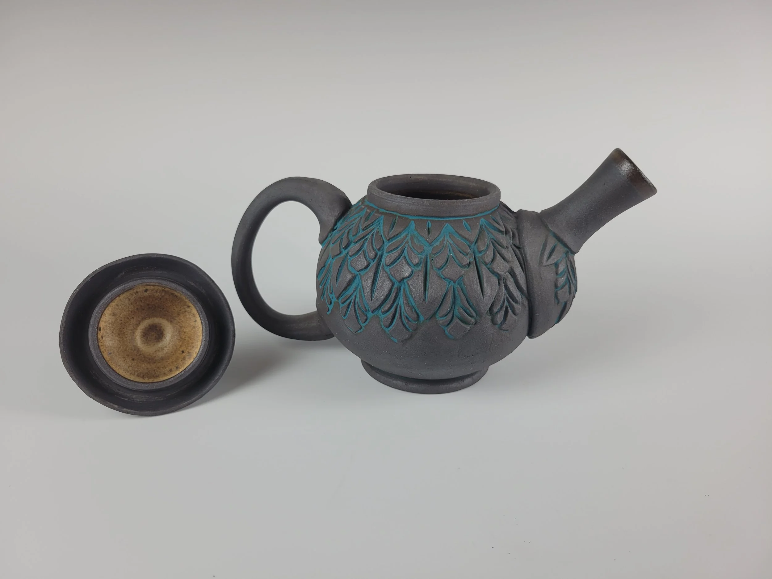 Shop › Black and Turquoise Teapot Image 1 of 28 Image 2 of 28 Image 3 of 28 Image 4 of 28 Image 5 of 28 Image 6 of 28 Image 7 of 28 Image 8 of 28 Image 9 of 28 Image 10 of 28 Image 11 of 28 Image 12 of 28 Image 13 of 28 Image 14 of 28 Image 15 of 28 Image 16 of 28 Image 17 of 28 Image 18 of 28 Image 19 of 28 Image 20 of 28 Image 21 of 28 Image 22 of 28 Image 23 of 28 Image 24 of 28 Image 25 of 28 Image 26 of 28 Image 27 of 28 Image 28 of 28 Black and Turquoise Teapot $85.00 Hand crafted wheel thrown teapot. 22 oz. Purchase Added! Hand crafted wheel thrown teapot. 22 oz. Reviews Reviewer Name Review Date Star Rating Description Posted on Etsy Product Show More